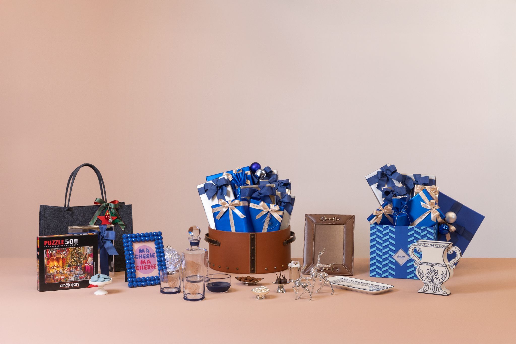 Divan Pastaneleri’nin birbirinden şık kutular ve ambalajlar içinde sunduğu hediye setleri, birlikte paylaşılan zamanların değerini hatırlatırken aynı zamanda Divan’ın misafirleriyle bağ kuran, onların en özel anlarına eşlik eden incelikli yaklaşımını yansıtıyor. Büyüleyici Zamanlar, Zarif Zamanlar, Unutulmaz Zamanlar, Işıltılı Zamanlar isimli hediye setleri, çikolata, lokum, kestane şekeri, drajeler gibi lezzetlerin yanı sıra konseptle uyum içindeki mumlar, şamdanlar, çerçeveler, karaf ve bardaklar, özel tasarım objeler gibi çok çeşitli aksesuarları içeriyor.